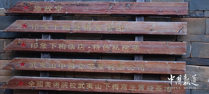 中国报道讯(吴蜀丰报道特约撰稿吴汉帝)下梅村,离武夷山国家风景名胜区仅5公里车程,南接武夷山度假区、属武夷街道办管辖。全村占地面积为220141平方米,村落建筑面积为124802平方米。全村现有人口2000多人,有村民500多户。全村目前仅有一所村级小学,医疗点4处。村民多为汉族,也有畲族。主要姓有:邹、江、方、陈、林、张、李、吴、王、彭、孙、岳、衷、郎、袁、黄、赵、郑、刘、周、祝、范等。该村除江姓自宋代入居外,明代隆庆年间各姓迁入较多,如孙姓等。清代邹姓又从江西南丰迁入,民国初期浙江龙泉各姓大量迁入下梅,上个世纪60年代闽中南地区贯彻国家移民政策,福清、惠安等移民入迁下梅,上个世纪70、80年代四川人口大流通时,有不少四川藉人口迁居下梅,使下梅形成多籍贯、多姓氏、多方言、多习俗的一个人口密集型大村落。经过一代代人的联姻磨合,村落语言、民风、习俗趋于一致。村民具有多重信仰,大都以信仰佛、道教为主,有不少村民信仰基督教。