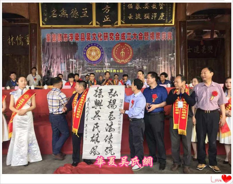 2018年5月6日,江西省景德镇浮梁吴文化研究会在瑶里古镇举行了揭牌仪式。江西吴氏文史研究会会长吴广凡率总会各副会长、以及婺源县、上饶县、鄱阳县、余干县等地会长到场祝贺。贵州、湖南、安徽等地以及浮梁县、乐平市、昌江区及市区的吴氏代表;浮梁县政府有关部门及一批德高望重的老领导,共有500多吴氏宗亲参加活动。