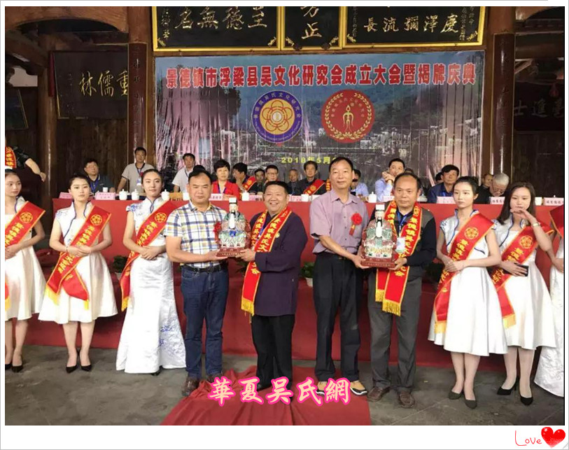 江西省会会长吴广凡与会长吴宏昌共同为景德镇浮梁吴文化研究会举行了揭牌仪式,并接受了兄弟宗亲会的礼品捐赠