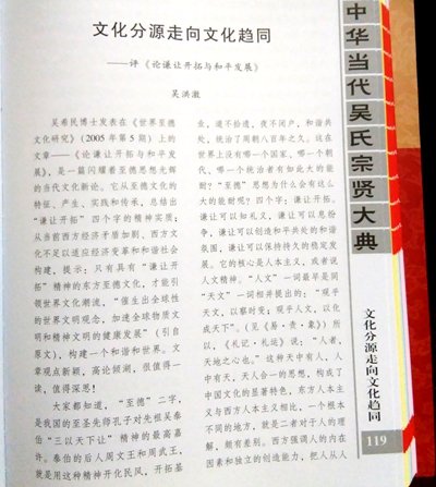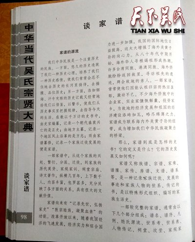 天下吴氏讯(吴蜀丰)【编者按】本期推荐文章:《谈家谱》。《姓族家谱和宗典人籍由私修私藏走向公开》作者吴洪激。《至德论与文化强国》作者吴洪激。《文化分源走向文化趋同》作者吴洪激。