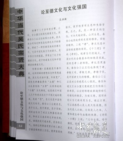 天下吴氏讯(吴蜀丰)【编者按】本期推荐文章:《谈家谱》。《姓族家谱和宗典人籍由私修私藏走向公开》作者吴洪激。《至德论与文化强国》作者吴洪激。《文化分源走向文化趋同》作者吴洪激。