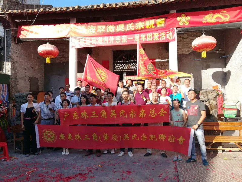 2018年5月20日,应珠海翠微吴氏宗亲总会的邀请,广东珠三角吴氏宗亲总会代表团一行27人前往庆贺,与来自各地的吴氏宗亲相聚一堂,共叙宗谊,共贺庆典。珠三角吴氏宗亲总会代表团团长为常务副会长吴占标;副团长为:执行会长兼秘书长吴昌禄、常务副会长吴镇添、副会长吴星显。