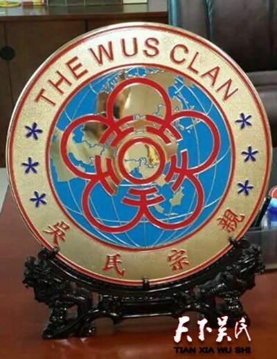 【吴氏会徽】吴氏会徽是泰伯至德精神的象征和中华吴氏的标志,自然成为吴氏国际性标志。泰伯生前性喜种梅,以五吴同口组成的梅花图案。寓意吴人缅怀祖先和发祥地无锡梅里。梅花的五片花瓣寓意着中国五湖四海,世界五大洲吴氏子孙同宗共祖,象征着吴氏族人心连着心,手牵着手,象征着吴氏族人的团结一致,和谐共荣,开拓奋进。梅花五瓣象征五福,形成吴字,吴家世世代代,子子孙孙,五福绵延。会徽的颜色,无论是黄底红花,还是红底黄花,单纯而强烈的色彩,都象征着吴氏族人的光明、喜庆与兴旺。外圆形似日月,像征泰伯后裔兴旺发达,前程与日月同辉。也暗含着颂扬先祖至德,“帝王之首”,“世家第一”的深意。梅花与吴氏族徽,更体现了民族之精华,值得族人,国人之尊祟。愿梅花清香永流芳,吴氏家风代代传。全国吴氏宗亲组织,经常授于表彰宗亲会内有突出贡献的宗亲,荣获吴氏会徽是宗亲组织中最高的荣耀。吴氏会徽有合金铸造,玉石彩雕,高级水晶,传家之宝,值得珍藏,贵重之作。直径20-38厘米,净重3-5.8公斤。
