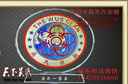 现在接受全国预订,吴氏宗亲会徽620元起包邮,(会徽总重13斤,广东省外另加,30元或40元(80或100),多退少补)。全国销售代理:吴海经.手机13428536666