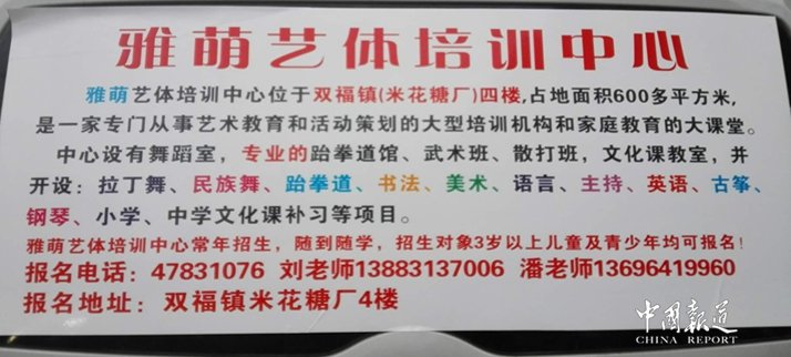 雅萌艺体培训中心】雅萌艺体培训中心创办于2010年,占地面积600多平方米,雅萌艺体培训中心是一所大型专业的培训机构,培养跆拳道优秀学员300多人次,他们多次获得重庆市大众跆拳道比赛,重庆市跆拳道锦标赛,全国跆拳道超级联赛前三名。舞蹈优秀学员200多人次,她们多次参加重庆市少儿春晚获得优秀演员奖、和优秀明星奖。美术,书法培养优秀学员300多人次,多名美术学员以美术艺考考入重庆市各大重点中学,考入北京清华大学美术学院。主持班培养出多名优秀的主持小选手,她们多次参加全国,重庆市大大小小的比赛均获得优秀成绩前三名,培养拉丁舞优秀学员100多人次,她们多次参加重庆市,拉丁舞锦标赛获得个人的前两名和团体的前三名。