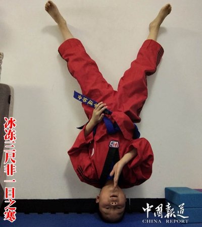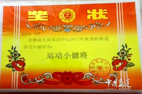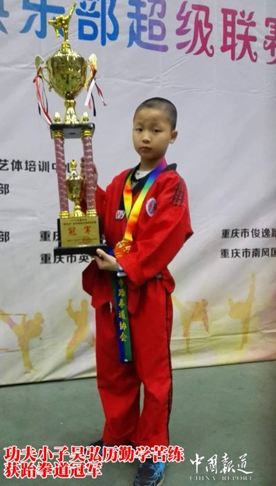 中国报道讯(吴蜀丰 重庆报道)常言道,自古英雄出少年,冰冻三尺非一日之寒,不到10岁的功夫小子吴弘历勤学苦练获“跆拳道冠军”。
