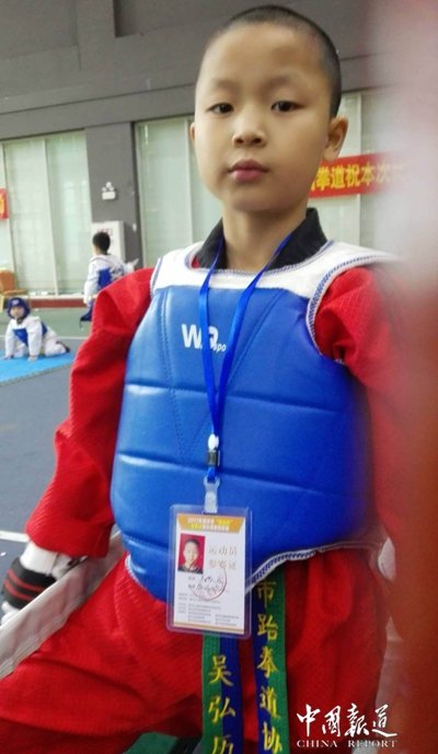 功夫小子吴弘历勤学苦练获跆拳道冠军