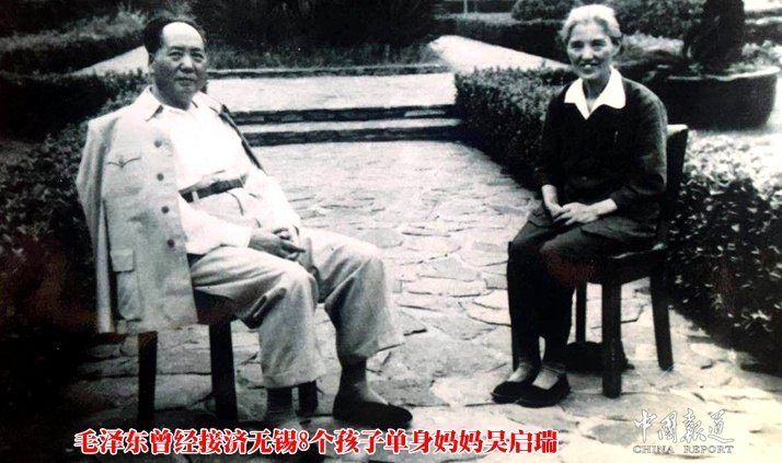 中国报道讯(特约供稿 吴乐一)毛泽东在上海接见吴启瑞时的合影。毛泽东曾两次回信并接济无锡一位8个孩子的单身妈妈,无锡档案馆特藏档案揭示“内情”,其丈夫临终前曾嘱她“有为难之事,可去找毛大哥”两封主席回信一段传世佳话。