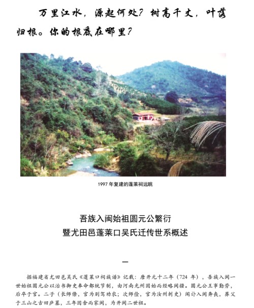 入闽圆元公繁衍暨尤田邑蓬莱口吴氏迁传世系