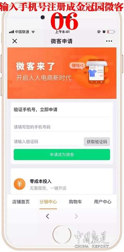 中国报道讯(吴蜀丰)微客是金冠园销售系统的一部分,每个人都可以通过金冠园微商城赚钱。成为金冠园微客后,在金冠园商城销售产品,根据不同的产品可享受约6-15%佣金。