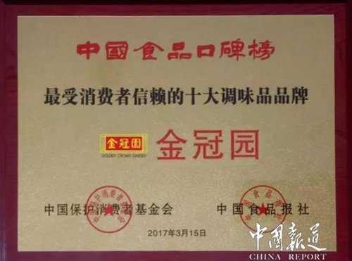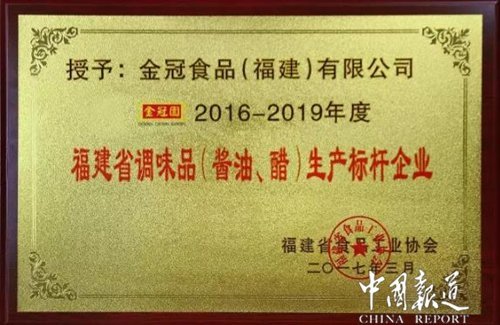 公司秉承“以质量求生存、以信誉求发展、以市场为导向、以服务为己任”的企业宗旨。 坚持以“创新、创优、创名牌”的发展理念,经过多年来的不断努力,先后通过ISO9001国际质量管理体系认证,HACCP食品安全管理体系认证,ISO14001环境管理体系认证和QS认证。在全国同行业中,成为首批获得国家质量安全生产许可证的企业之一,获得“07年中国质量500强”、“省级卫生A级单位”、“国家质量达标食品”、“质量第一,诚信经营企业” 、2002年“金冠园”酱油被授予“国家免检产品”称号;获得2003-2004第十叁届中国厨师节指定调味品称号;同时公司也注重品牌建设,“金冠园”牌先后获得“中国驰名商标”、“中国星火计划项目”、“全国食品工业龙头食品企业”、“食品卫生A级单位”、“中国名牌产品”、“中国星火计划产品”、“工商企业信用良好企业”、省市“先进企业”等荣誉称号。产品畅销全国各地并大量出口,深受广大消费者青睐。