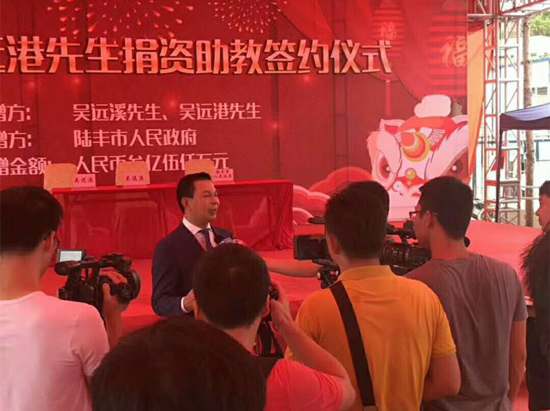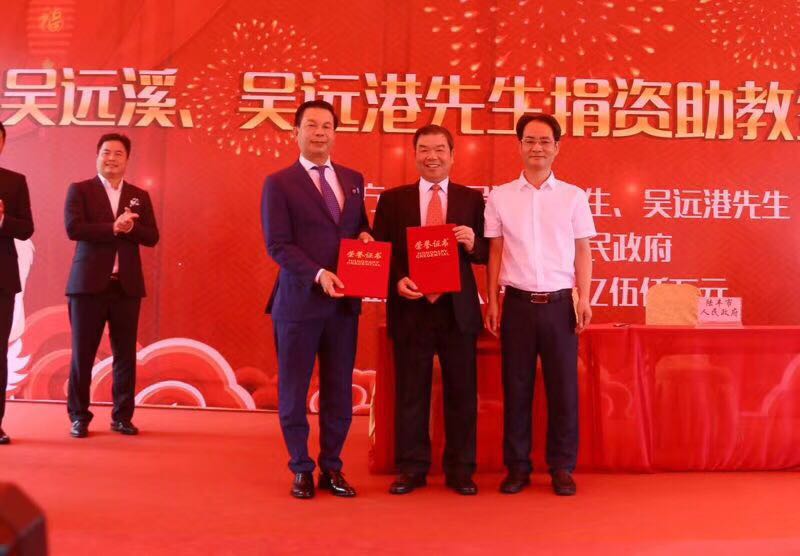 【吴河西 吴裕增来稿】 2018年6月6日,吴远溪、吴远港兄弟捐资助教签约仪式在陆丰市举行。吴远溪、吴远港兄弟是深圳市吴文化交流会荣誉会长、广东两陆吴文化代会长吴远林的亲弟弟,他们这次捐献了三亿伍千万给陆丰市人民政府用于教育事业! 陆丰市委书记邬郁敏,市长许伟明等人出席了捐献仪式。
