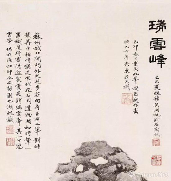 《瑞云峰》,于太湖石千秋历代浩瀚的历史母体,于晚清词学界盛况的体现,于民国众文人的时代面貌,于吴氏绘画创作的本身,都浓缩于斯图之中,有着非凡的意义。