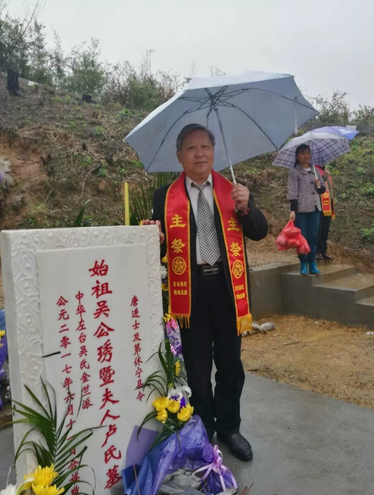 清早就下起了雨。祭祖活动的组织者吴志贤、吴阿九、吴加树等同志调来大巴车,10多辆小车也陆续赶到宾馆,几十人一起焦急地等候在新宇酒店的大厅里。雨就是不停,时而纷纷,时而滂沱。上午九时,大家祭祖心切,也顾不了雨的大小,毅然登上了祭祀的车辆。