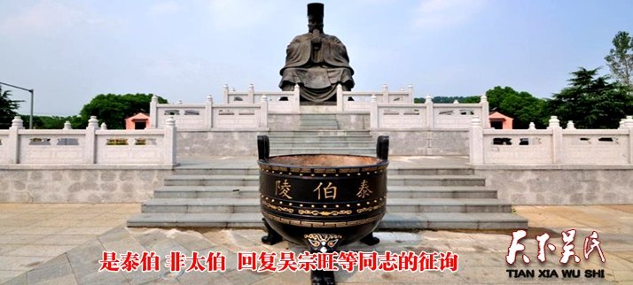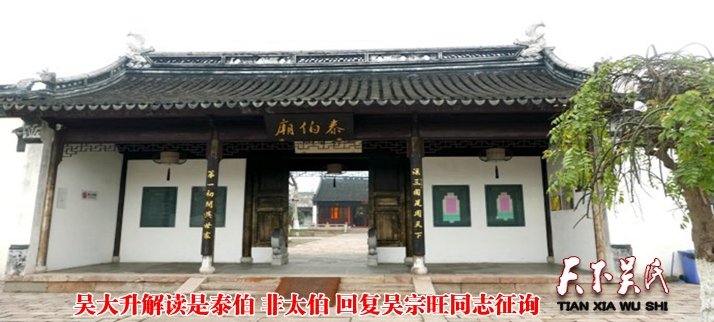 其中有安徽吴宗旺同志给我发来微信:@吴大升,某些专家说了一些论证的话,说泰伯公、泰伯庙应改为太伯公、太伯庙,宗长怎么看的?我简短地回复:宗旺宗亲,你好!你抬举我,征询我是用“太“还是用”泰“,哪个字合适?我用的”泰“字。其理由有三:一是中国最早的学术权威孔子在其《论语》中写的是”泰“不是”太“;其二是祖地无锡全部使用”泰“。包括泰伯墓、泰伯庙、泰伯广场、泰伯大道……;其三,是我家族谱记为”泰伯“。近20本的族谱没有一处写”太伯“。我谱是多次续修,尤其是明进士、朝廷给事中、福建布政使吴文佳亲自续谱。至于有的人搬出很多理由要统一为”太伯“,我看是没有可能的。今天,我还是想就这几个原因稍微详细一点的说明一下。