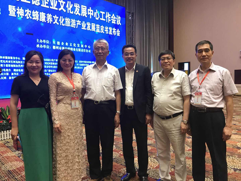 至德中心主任吴锡伟主持会议并作中心工作报告,会上为郴州神农蜂授牌揭牌,向中心顾问、专家智库成员等颁发聘书,宣读了神农蜂康养文化旅游产业发展蓝皮书,举行了智能养蜂系统上线启动仪式和项目签约仪式。与会者还参观了桂阳文化园、“全国五星级休闲农业与乡村旅游园区”神农蜂生态旅游综合体。