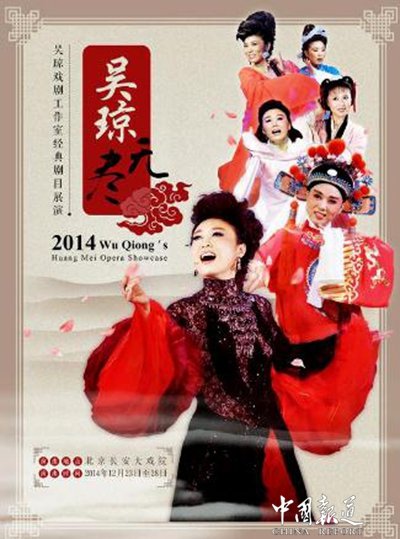 2014年12月23日至28日,由六场演出组成的"黄梅戏戏剧周--吴琼作品展演"将在北京长安大戏院上演。近几年国内黄梅戏演出中,黄梅戏老三篇的《天仙配》、《女驸马》以及《红罗帕》集结展演还是首次。(附演出安排表:12月23日,女驸马。12月24日,天仙配。12月25日,红罗帕。12月26日,严凤英。12月27日,我唱我心--吴琼演唱会。12月28日,贵妇还乡)。