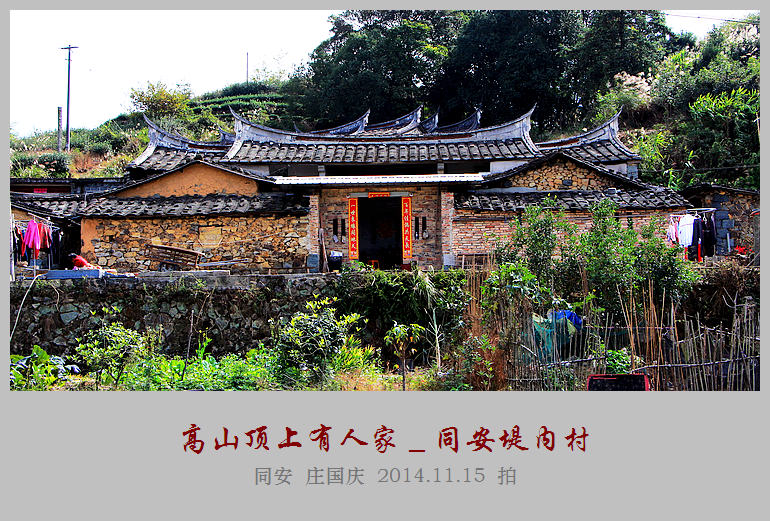 同安堤内村位于厦门西北部最偏远的同安高山上,与安溪县桂窑村毗邻,距同安城关约25公里。四面环山,聚落呈椭圆形,仅辖堤内1个自然村,2个村民小组,132户居民,人口432人,多吴、林姓。村委会驻堤内,以驻地村名为村委会名。