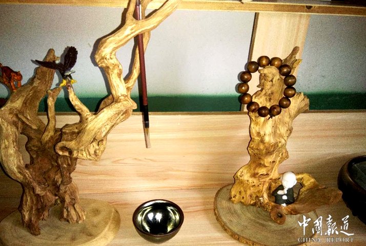 吴府的主人吴汉帝告诉记者,除了种茶和吴氏商会的事,根雕是他的最爱之一,吴汉帝说,根雕是中国传统雕刻艺术之一,是以树根(包括树身、树瘤、竹根等)的自生形态及畸变形态为艺术创作对象,通过构思立意、艺术加工及工艺处理,创作出人物、动物、器物等艺术形象作品。