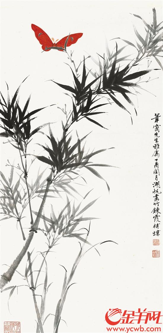 吴湖帆、周鍊霞作品《墨竹红蝶》