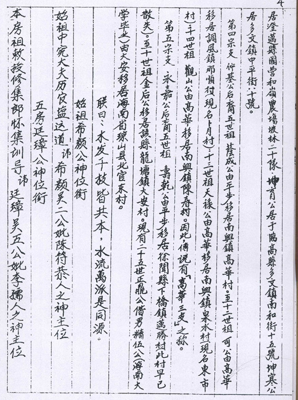 第二宗支12世观生公移居雷城镇,后裔至16世敬修公移居白沙镇夏路村,23世定贤公移居徐闻县迈陈镇那黄村。