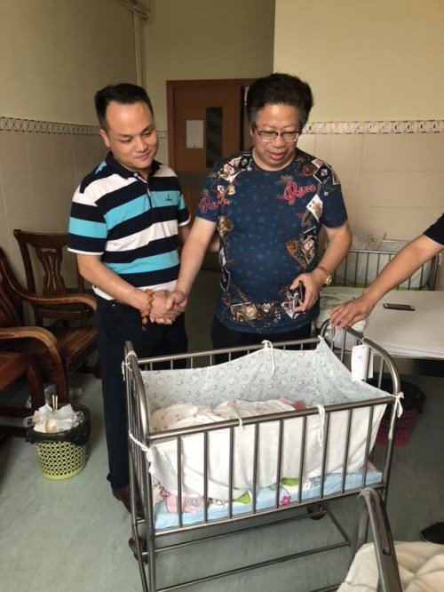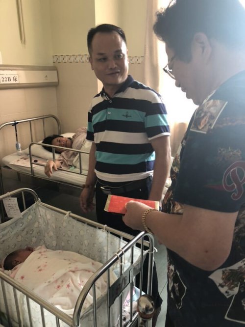 吴焕其宗长在百忙之中看望刚喜得千金的河南南阳在东莞常平龙雨公司吴小东宗亲一家。