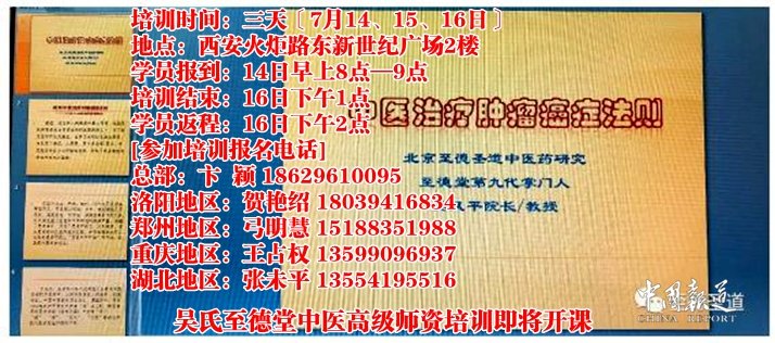 [培训内容]肿瘤与癌症:主要讲解肿瘤与癌症的发病原理,辩证、分类、治疗的原则,处方和药物的规范、预防等。传授吴氏抗癌丹、消瘤膏等秘方。(注:本套技术经过25年临床验证,晚期癌症治愈率50%;中期治愈率75%;早期治愈率95%左右)糖尿病:主讲糖尿病的发病原理、治疗原则、处方秘药、预防等。传授吴氏消渴饮等秘方,重新认识糖尿病。(注:吴氏三焦辨证论治理论与众不同,经过吴氏数代人的潜心研究、完善、总结,治愈率极高。二型糖尿病治愈率95%左右,彻底打破现代医学的糖尿病无法治愈,需要终身服药的歪理邪说。)高血压病:主讲高血压的发病原理、分类辩证、治疗原则、秘方解义、预防等。传授吴氏降压丹秘方。(注:高血压治愈率高达96%左右。彻底打破并推翻西医终身服药的胡说歪理!)综合类:主授哮喘、咳嗽、肺气肿、肺纤维化、风湿病、类风湿病、痛风、各种皮肤病、肝胆病、水肿、脾胃病等疑难病的理论和秘方。头痛、眩晕、中风偏瘫(传授非物质文化遗产保护项目“吴氏中风偏瘫疗法”秘方!该秘方现仅仅只有吴氏中医第九代传承人吴风平教授一人所继承,是国家认定的唯一传承人!)、颈椎病、腰间盘突出、骨质增生、腰腿痛、股骨头坏死、痹症等根治秘方,当场让重度不能行走的腰间盘突出患者抬着进来,经过治疗后自己轻松走出去!让患者心服!让同行心服口服!传授特殊技法:吴氏腰间盘突出一次性复位手法(该手法与众不同,具有独特性!注:治疗腰间盘突出的难度就是在于复位与复位后的固定法!凡是不能复位,其腰间盘突出永远都不可能治愈!虽然当时有效或者临床治愈,但是很快就会复发!不能复位和无法固定治疗腰间盘突出的方法是胡扯淡!);秘传推拿法、阴阳针法、九通神针术(烧山火、透天凉等九种特殊针法);天元气功等。
