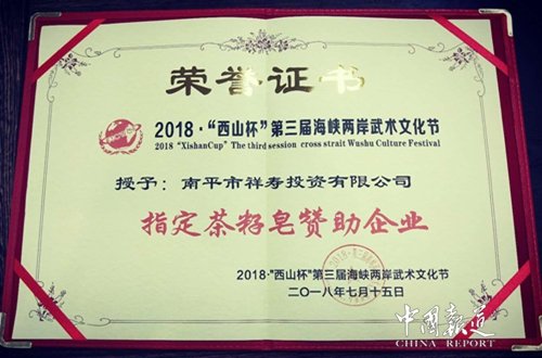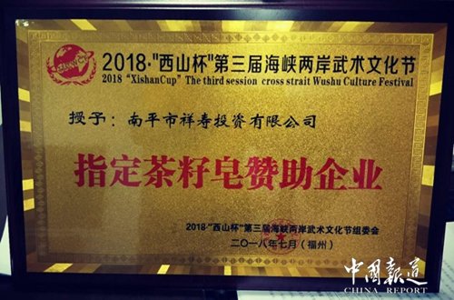 7月13日,第三届海峡两岸武术文化节在福州举行开幕式。来自法国、新加坡等多个国家和地区的队伍,共1300余人参加了本次活动。南平市祥寿茶籽科技有限公司作为特约赞助商,天然产品茶籽皂作为特约赞助产品提供运动员洗浴使用,得到了极大的好评。