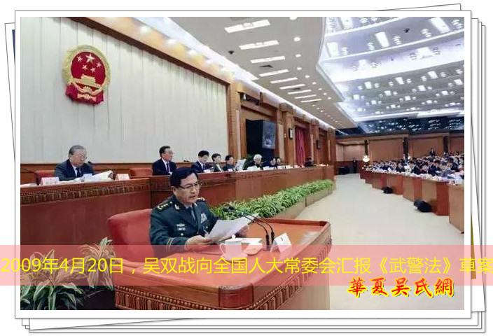 2009年8月27日,全国人大常委会审议通过了《中华人民共和国人民武装警察法》。这部法律的颁布施行,标志着武警部队建设和发展进入一个新阶段。近年来,武警部队在维护社会稳定方面的任务越来越重,用兵频率越来越高,情况处置难度越来越大,这些都迫切要求提供有力的法律保障。2003年,武警部队成立武警法起草领导小组及办公室,认真调研,撰写立法报告,拟制起草方案,经过6年多的努力,基本完成了草案的起草工作。“制定颁布武警法,是落实依法治国方略、体现国家法制权威的重要举措。”吴双战说。