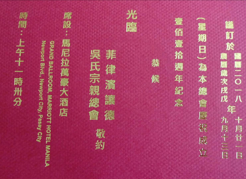 韩国吴氏宗亲总会的30多名会员预定到菲律宾参加10月份的让德堂110周年庆典。
