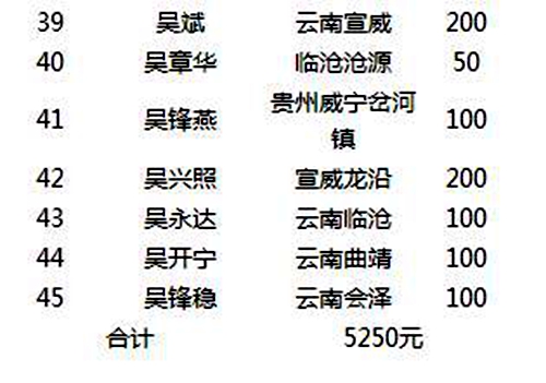 最后,再次感谢有龙宗长、建根、开早、三祥、昭乾、超达、方荣、锋志等所有宗亲!感谢你们的关怀!感恩吴氏的团结和大爱!让我们一起愿老爷子一路走好!让我们一起为云南吴氏贡献自己的力量!