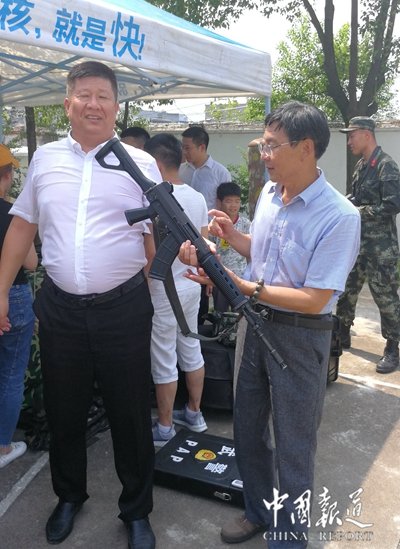 慰问组一行在俊杰中队长和斌斌指导员的陪同和安排下,先后参观了官兵们的宿舍内务、黑板报专栏、食堂和官兵们使用的武器展示。并与前来慰问的公安及有关部门的领导一起在训练场,共同观看了他们的训练汇报表演。擒敌术、刺杀术、突发事件演练等的汇报、使现场不时响起阵阵掌声。