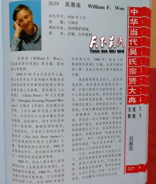 吴惠连《圣路易斯信使报》原总编 斯坦福大学教授