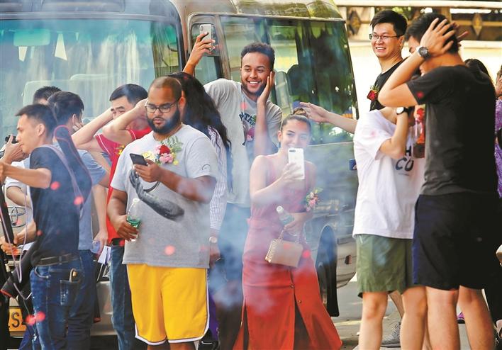 这次回到深圳平湖新木新村,凯尔·安德森就像刘姥姥进了大观园,对什么都感到新奇有趣。2米06的大个子,不停地与亲人们握手致意,脸上一直挂着标志性的微笑。