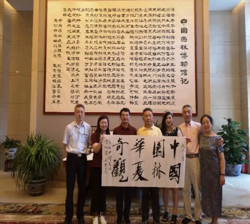 上周,止园园主人吴亮的后人吴欢先生来到中国园林博物馆,园博馆副馆长黄亦工与其走进中国古代园林厅,一睹止园学术研究复原成果——止园模型的风采。吴欢先生现场题字“止园”赠送于园博馆。