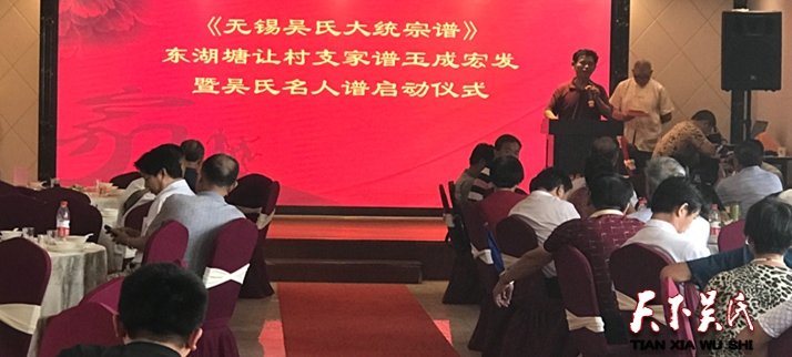 贵州省吴氏宗亲总会吴学强会长、无锡市吴文化研究会、泰伯吴氏祖地宗亲联谊总会、无锡吴氏祖地宗亲会、无锡市图书馆、无锡市谱谍文化研究会、常州吴氏宗亲会、延陵季子宗亲会、张家港吴氏宗亲会、宜兴济美堂吴氏宗亲会等宗亲代表一百五十余人参加了此次东湖塘让村家谱宏发玉成暨吴氏名人谱启动仪式。