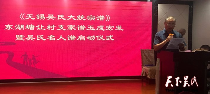 据介绍,本次《无锡吴氏大统宗谱》东湖塘让村家谱是在无锡吴氏祖地宗亲会吴仁山会长的大力倡导下宏发玉成!