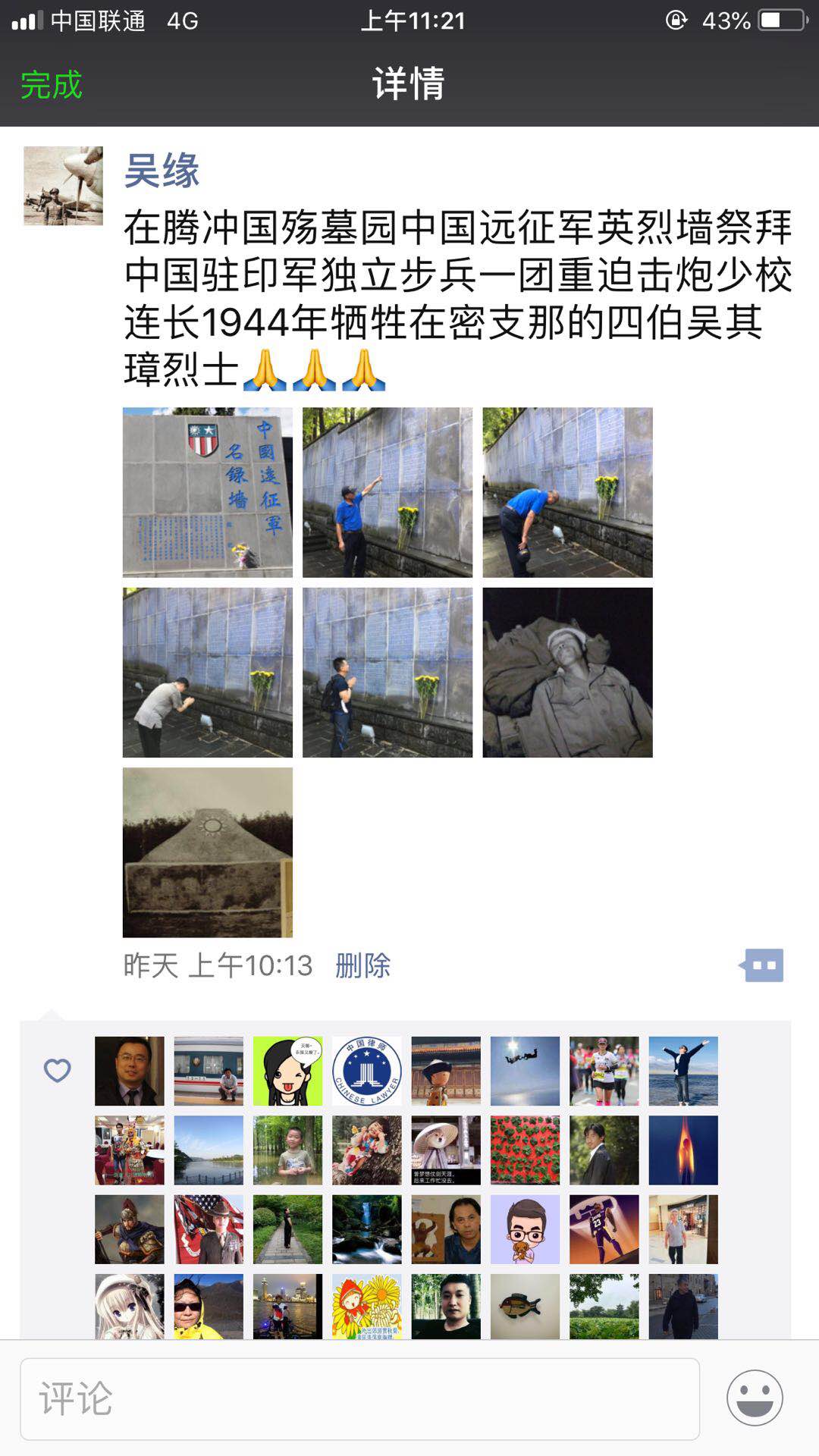 吴缘宗长在云南腾冲国殇墓园 中国远征军英烈墙