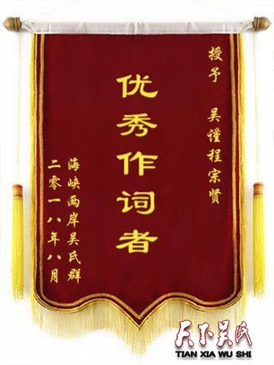 中国报道讯(吴蜀丰 中国台湾省报道)期盼已久的《海峡吴氏一家亲》歌曲终于登场放声高歌,传遍海峡两岸,海峡浅浅,宗情深深,血脉相连,延陵同根,《海峡吴氏一家亲》这首歌词语创作大气,充满昂扬向上的正能量!歌词最后一段更是词语激昂,旋律高亢,吴氏怀宗,壮行天下。一直以来,两岸情深就缺少这样吴氏之歌,现在好了,承蒙诸位宗亲爱心帮助,特别是吴谨程、吴仕长宗贤的鼎力相助和极大贡献!成功了把这首好听的歌曲录制完成,响遍大江南北,延陵相庆,九洲同祝福!