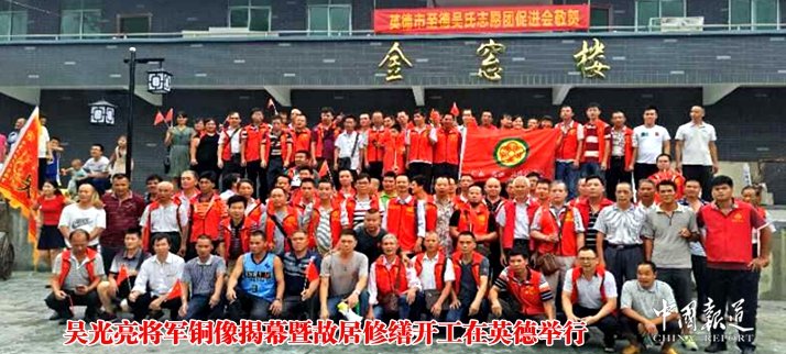 中国报道(吴蜀丰报道特约采编吴文彬8月29日,吴光亮将军铜像揭幕暨吴光亮故居修缮开工仪式,吴氏爱心团应邀参加活动,爱心团团员踊跃参加,派出约150人的队伍和三支舞狮队,团员穿着整齐划一的红色团服,车队浩浩荡荡的出发往黎溪松岗围村,一路上相当引人注目。松岗围村宗亲热情的接待我们,敲锣打鼓,鞭炮声声,热闹非凡。开幕式由吴光亮第五世孙吴翠霞主持,黎溪镇彭书记、帮扶单位碧桂园集团领导、恒昌村支书、市政协副主席林超富、特邀嘉宾朱建锋等分别致辞祝贺,英德电视台记者也到现场采访。