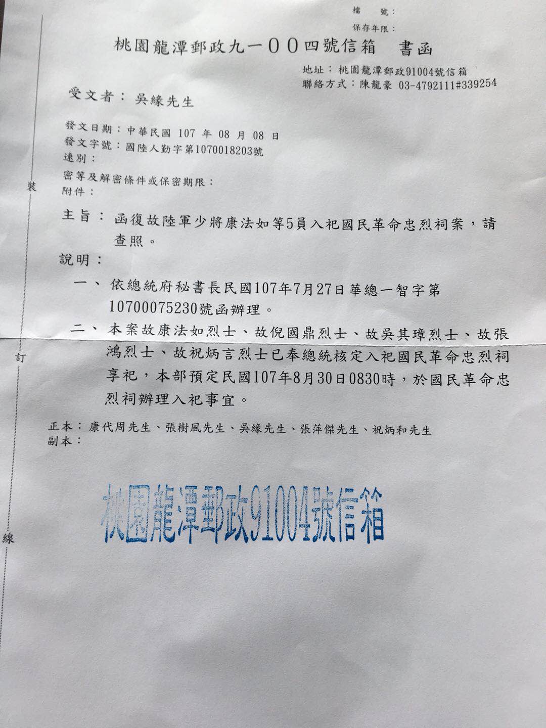 马来西亚砂拉越诗巫市新福州开埠先驱吴銮仕襄理的儿子,归侨,中国远征军烈士吴其璋,时隔74年后,经三代人的不懈努力,业经中华民国总统核准,于2018年8月30日上午8:30分,入祀中华民国国民革命忠烈祠,永远受到国人的尊崇。
