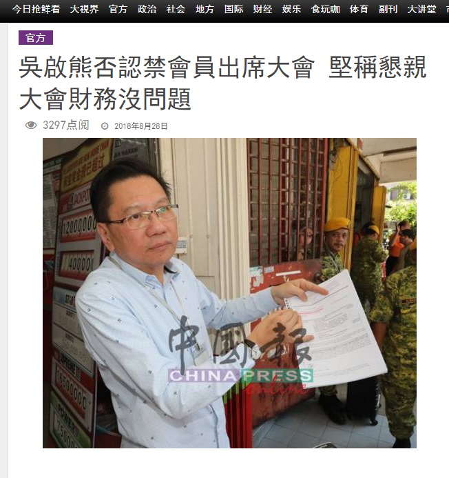针对要求召开特大不获正视的说法,吴启熊表示若是要求不符合章程,自然无法接受,所以所谓的无理拒绝也是没根据的指责。他也表示,基于牵涉到法庭纠纷,律师劝告很多事不便说明,所以他不宜多讲