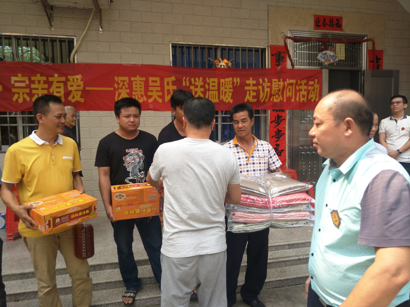 9月4日上午,深吴宗亲受深吴会会长燕平宗长和执行会长国强宗长的委托,分乘6台小车以及一台运送救灾物资的卡车,来到惠东,到达位于惠东县城关的吴氏宗亲会所,在这里,深吴宗亲受到了惠东吴氏宗亲会的宗长宗亲们热烈欢迎,深吴宗亲慰问了受灾的吴氏宗亲,向惠东受灾宗亲表达爱心。