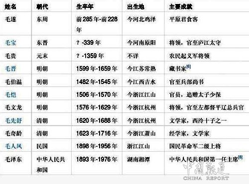 中国报道讯(吴蜀丰)中华姓氏之一毛姓,是一个典型的多民族姓氏,主要源自姬姓及少数民族改姓。毛姓在宋版《百家姓》中排名第106位。至2007年,按人口排序,毛姓总人口约250万,占全国总人口的0.2%。在中国大陆排名第87位,到2016年排名是77位,在台湾未列入前一百名。毛叔郑为得姓始祖。以鸟羽为图腾,毛下为鸟形灵台,灵台天齐上为相风鸠鸟。