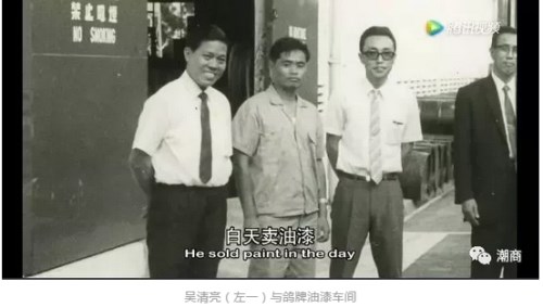 1949年,英国拍卖二战剩余物资,其中有一批废油漆及废料无人问津。吴清亮以非常便宜的价格买来后,一边自己摸索废物利用,一边翻找化学书籍、请教化学老师,结果把这批二手的各种溶剂颜料和化学品混到一起,调制出鸽牌(Pigeon)油漆。后来,因做出名气,他被在地人称为“臭漆王”。