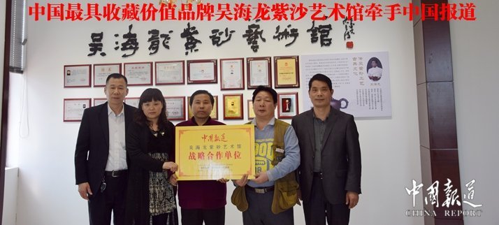 一件好的紫砂壶,远远不是几个简单的步骤就能做出来的,这需要匠人的功力,还有细细打磨的耐心、用心。记者们注意到吴海龙粗糙的手掌,那是常年与泥土打交道留下的印记。8岁时,吴海龙就用课余时间捣鼓起了紫砂,做出来的紫砂花盆成为集市上的“抢手货”。15岁初中毕业那年,他便跟随父亲学艺,反复练习打泥条,直到泥条的厚薄、平整度完全一致。枯燥、繁重的工作使他懂得紫砂工艺必须追求一丝不苟,更明白臻品宝壶锻造之不易。他表示,所有打上吴海龙商标和吴氏金鼎标记的壶,从泥料开始到烧制成型,他都会全程跟踪,看好把握好每一个环节,保证所有的货出来都是精品。在整个流程中,如若发现有不合格的壶,会直接把它销毁,以防流入市场中。