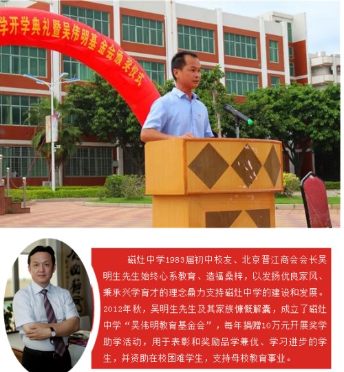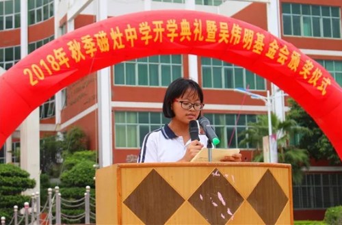 秋风送爽,金桂飘香,红叶绚烂,硕果芬芳!9月11日下午,磁灶中学隆重举行2018年秋季开学典礼暨吴伟明教育基金会颁发仪式。