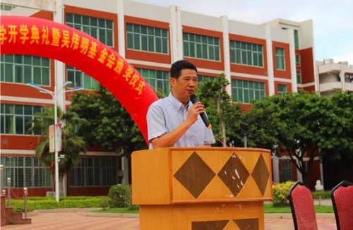 后记:一直以来,吴明生先生始终心系教育、造福桑梓,以发扬优良家风、秉承兴学育才的理念鼎力支持我校的建设和发展。“吴伟明教育基金会”的每一次奖励都凝聚着吴伟明先生及其家族热爱家乡、建设家乡一片赤子之心,都凝聚着对家乡教育事业发展的殷切期盼。他们的爱心捐赠,倾注着情系教育、造福桑梓的无价情谊;他们的慷慨相助,彰显着世间最美好的爱心接力!他们带着支持我校发展的深情厚意,带着对孩子们的拳拳爱心,参加这次大会,正如一场及时雨洒在我们每个人的心田,感动了全体师生。他们的爱心义举,将福泽千秋!