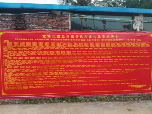 我们对奉款300元以上者录入功德坊,供族人垂范。