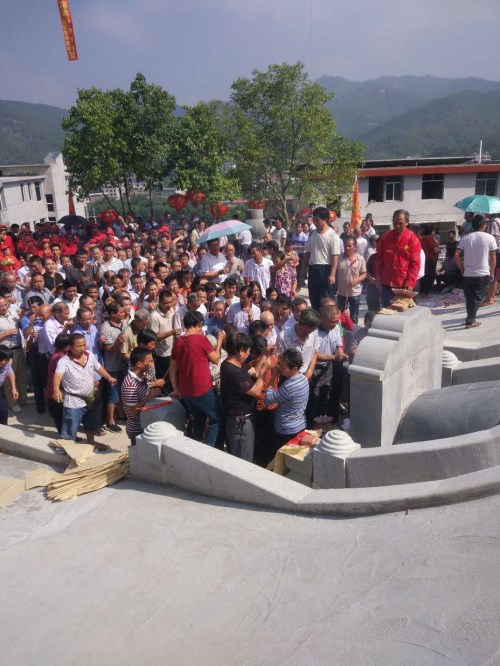 4.揭碑仪式。吉甫公墓重修和各项工作在广大宗亲的大力支持下正顺利进行中,根据“公祭吉甫公墓迁葬20周年活动”筹备组计划和工程进度,为了使8月公祭顺利开展,于2018年6月15日(农历5月2日)举行吉甫公墓重修揭碑仪式。上午12时,来自广东普宁、广西、江西瑞金、福建宁德周宁、泉州、上杭、永定等地宗亲代表300多人参加了隆重的揭碑仪式。广东普宁梅田种德堂纪钗会长、龙岩市吴汉鑫会长、上杭科生会长,永定长煊会长等主持了揭碑仪式。